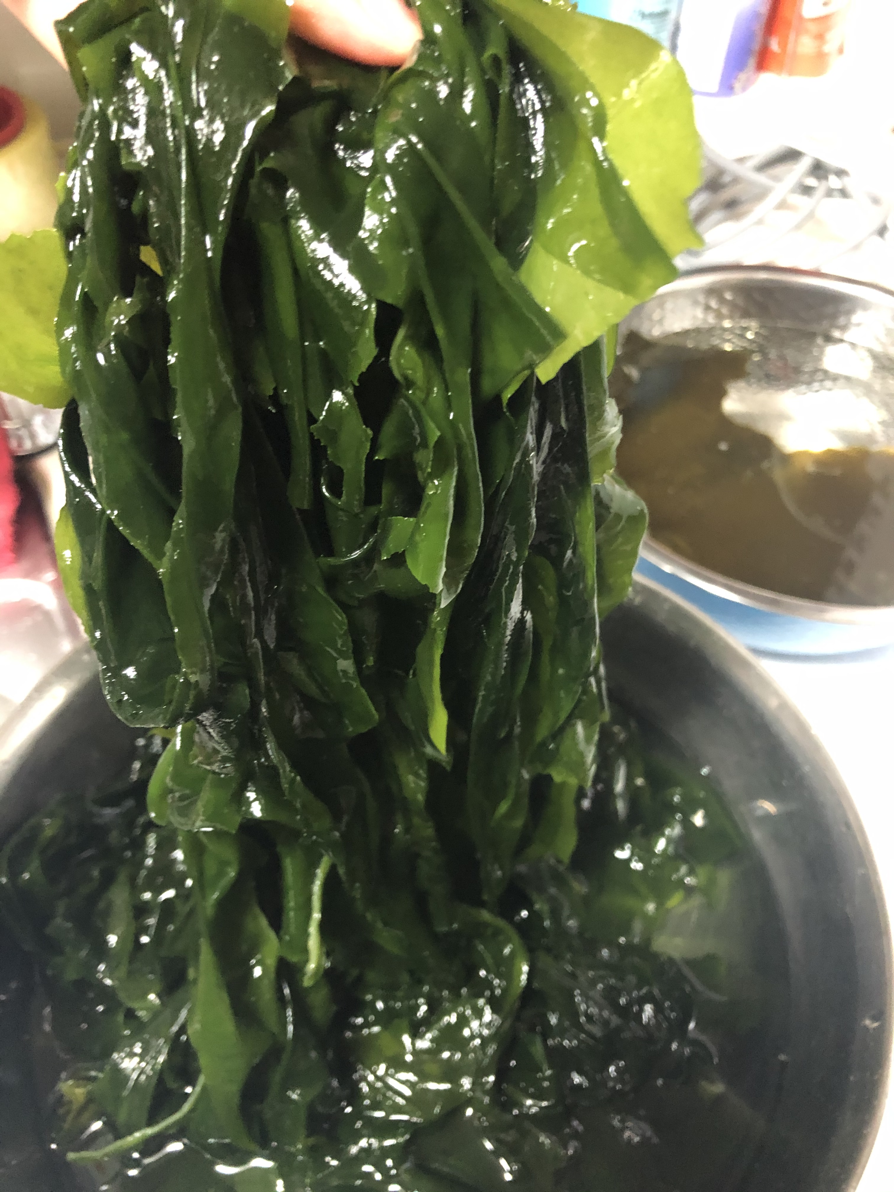 미역의 알긴산이 너무 빨리 빠져나와 충분한 효과를 볼 수 없다고 하니깐 꼭 찬물에 불려주세요.
